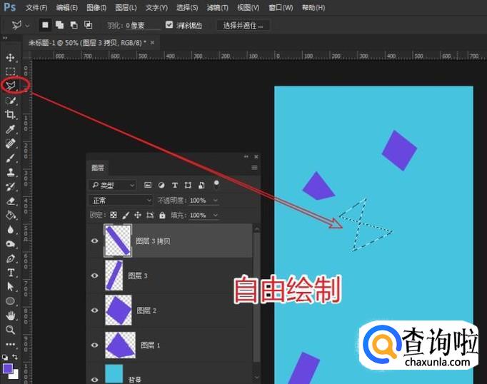 使用多边形套索工具,在画布上绘制不同的形状作为背景元素。