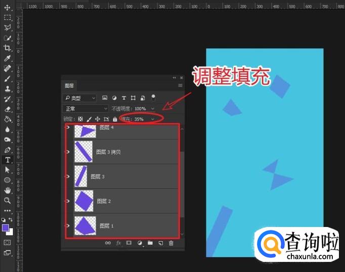 将所有形状的图层选择,将它们的填充降低到35%左右。