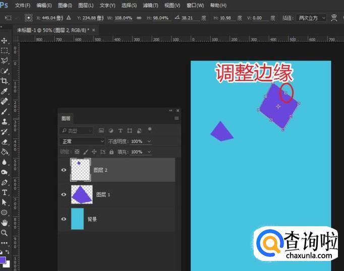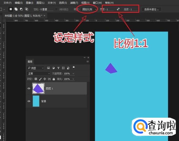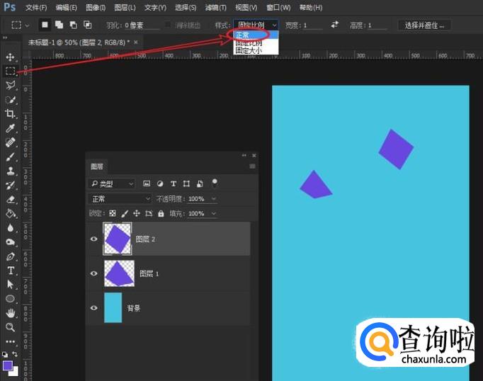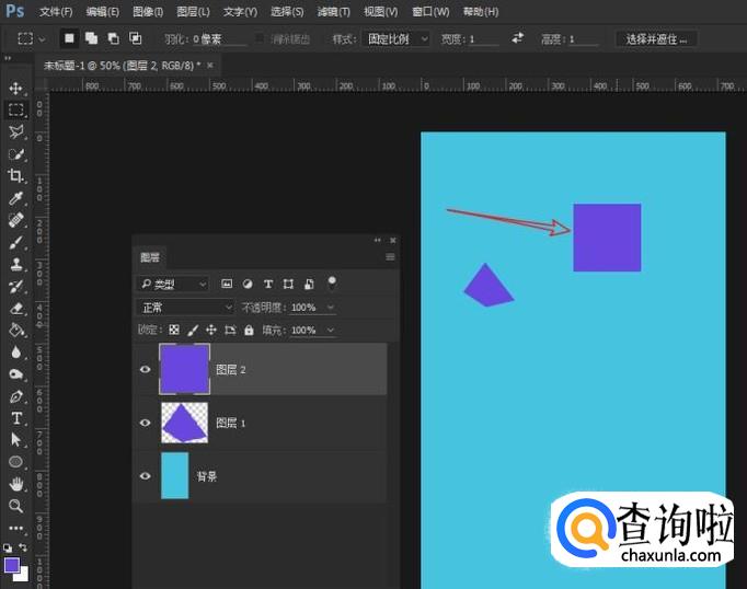 绘制一个正方形,使用同样的方法建立新图层并填充选区。