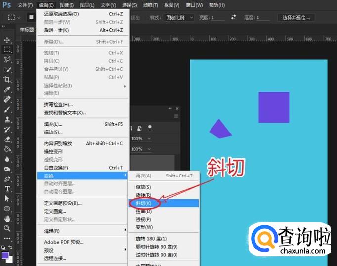 通过长按鼠标左键,选择子级菜单下的“矩形工具”。
