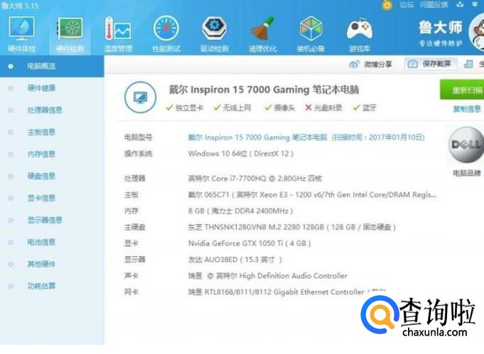 笔记本电脑安装鲁大师,安装完成后,在界面找到硬件检测然后点击打开,等鲁大师正常检测硬件完毕。