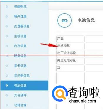 点击电池选项,就会出现电池的详细参数和性能,其中,笔记本就会有电池损耗这一项,通过这个,可以简单判断电池使用情况。