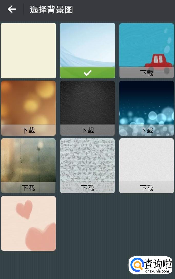 下面我们就分别来看看如何设置吧!若选择“选择背景图”,进入如下图所示界面,选中你喜欢的一张图,下载完成并点击该图,即设置成功并自动跳转至步骤4图示页面。