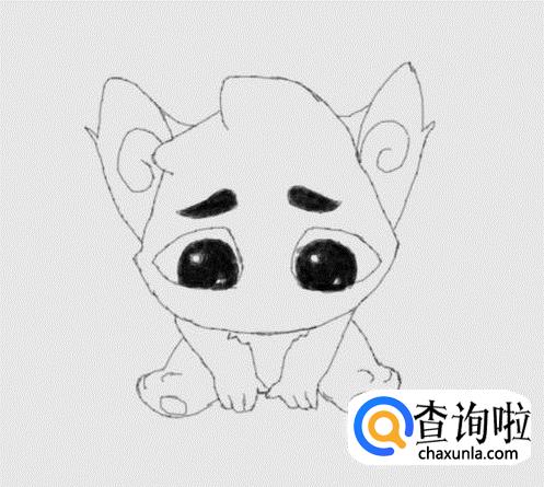最后我们在画出京剧猫白糖的身体、两条腿及脚部,这样京剧猫白糖小时候就画好了,如图所示: