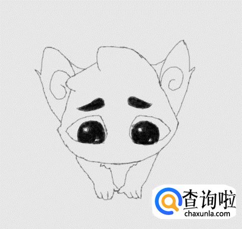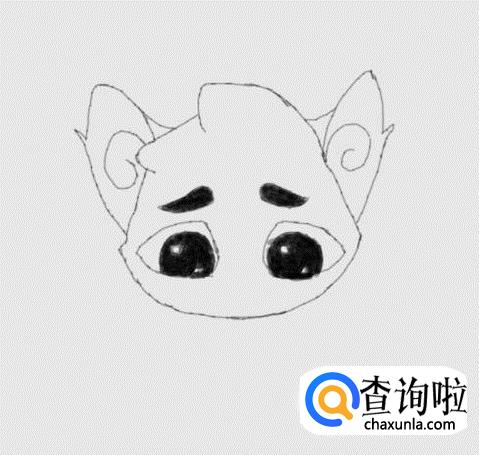 再在眼睛轮廓线内画出京剧猫白糖的眼珠,如图所示: