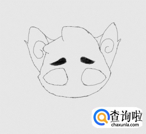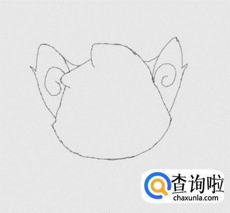 再在头部轮廓上画出京剧猫白糖的两只耳朵,如图所示: