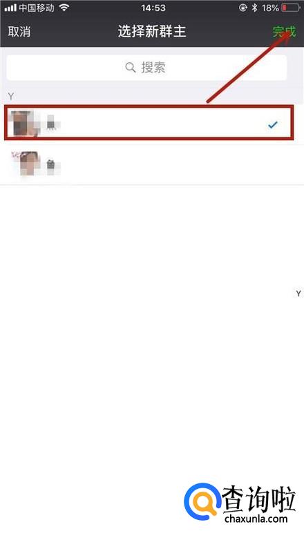 接着选择一个,群成员并点击完成,如下图所示。