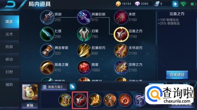 第二件装备我们可以出泣血之刃,这个装备是可以增加一定的攻击力的,其次还有物理吸血,这个属性对于鲁班来说是非常好的,可以在前期打小兵的时候增加自己的血量,非常的实用。