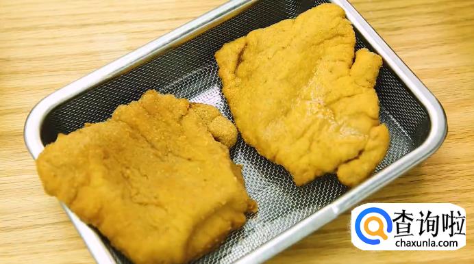 在锅里加入适量的油,把油加热到160度,放猪排进去油炸,炸至猪排表面金黄即可捞出,过滤掉多余的油。