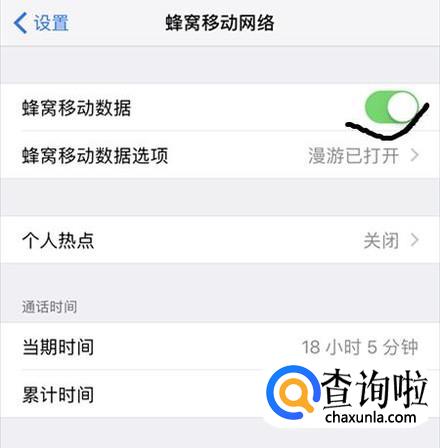 然后将数据打开来,接着再选择蜂窝移动数据选项,点击这个按钮,然后将语音和数据漫游都打开即可。