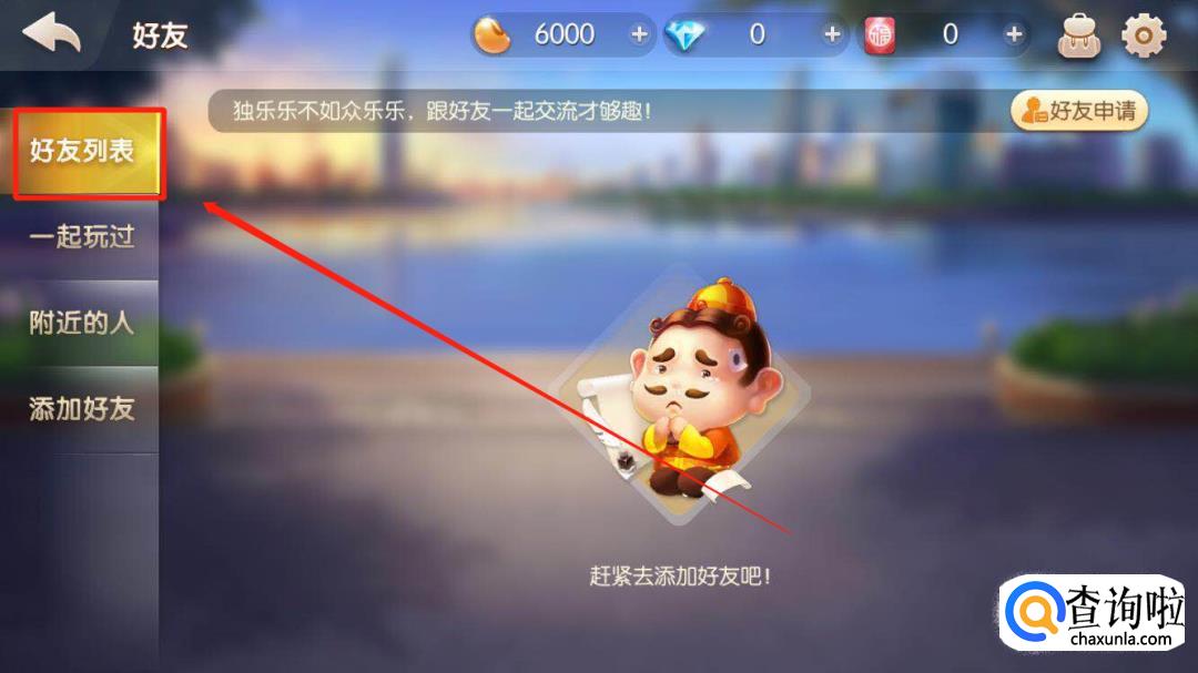 首先打开并登录欢乐斗地主,找到下方的好友。