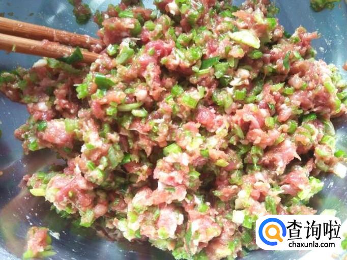 芹菜末放进肉馅里,然后进行搅拌均匀就可以了。