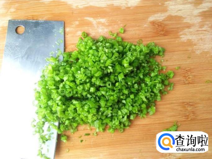 芹菜的使用量随大家自己决定,你要是喜欢多吃蔬菜那就多放点,喜欢吃肉就少放点,摘去菜叶清洗干净,搓成芹菜小段然后剁称末,用手挤一下,把里面的芹菜汁适当挤出来一些,但不要挤的太干。