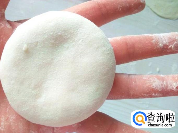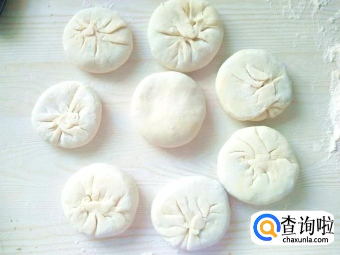 包子捏好之后,把有褶子的一面朝下放在面板上,然后用手轻轻一压,看吧,馅饼做好了,是不是超级简单?记住了,千万别用擀面杖哈,直接用手轻轻一压就可以了。