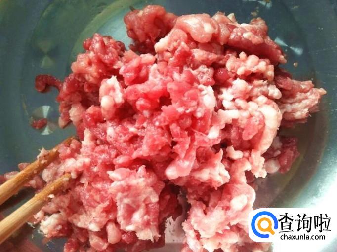 猪肉不要肥肉,肥肉和芹菜搭配起来会非常油腻的,选择瘦猪肉,作者买了一斤,但实际上只用了一半,这个用量大家自行决定。把瘦猪肉清洗干净,然后剁成肉馅。