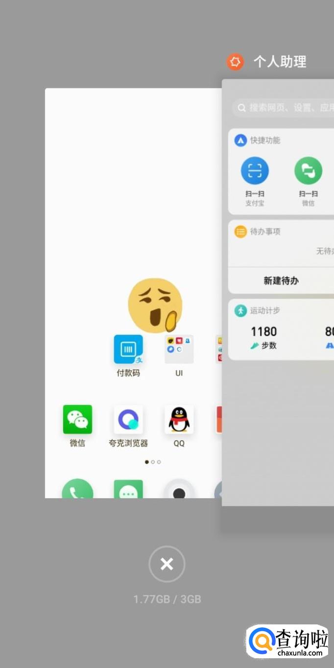 确认需要分屏的应用之后下滑应用,在按钮中点击“分屏”即可进入选择分屏应用界面。