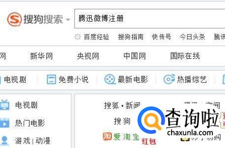 首先在搜狗浏览器中输入腾讯微博注册并点击回车键,如下图所示。