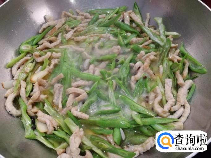 下四季豆一起翻炒均匀后,加适量清水煮至四季豆软熟。
