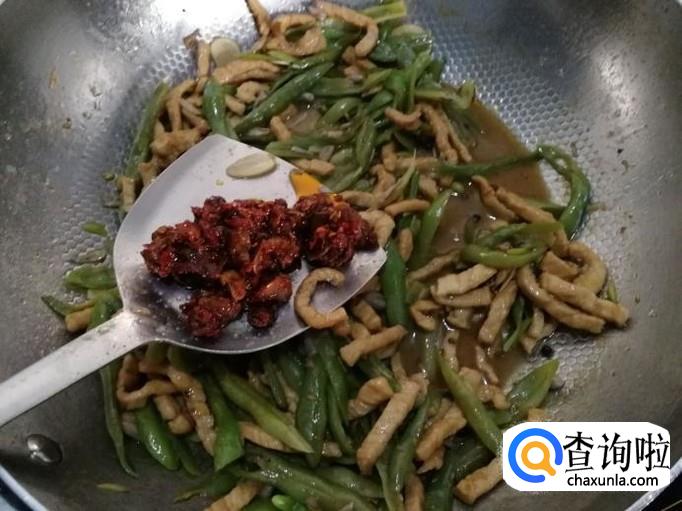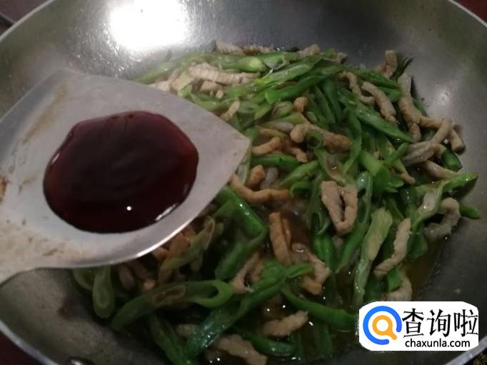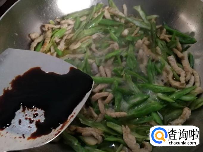 加入老抽、蚝油、盐、豆瓣酱翻炒均匀。