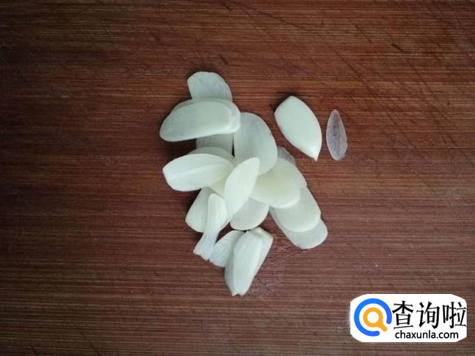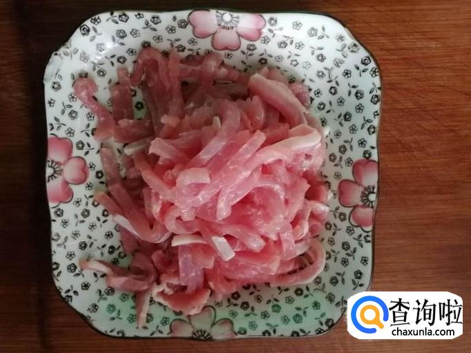 猪里脊肉切成细丝,加生抽、盐、花椒粉、香油、水淀粉搅拌均匀。大蒜剥皮洗净后切成片。