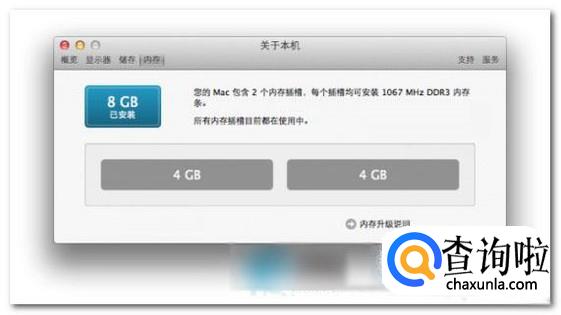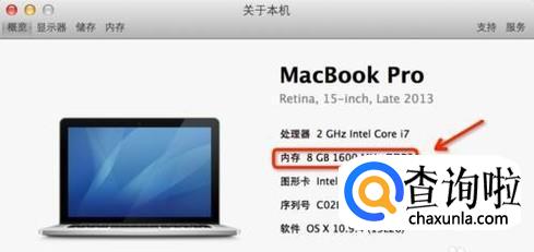 然后在弹出的窗口中,就可以看到,写着这台苹果电脑的内存容量大小,如图所示。
