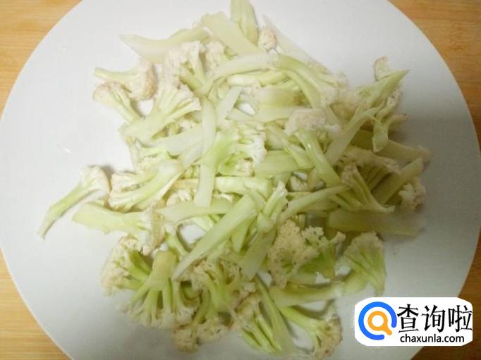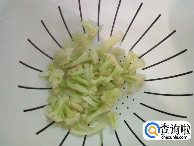 有机菜花用手掰成小朵,用水清洗干净,控干水分。