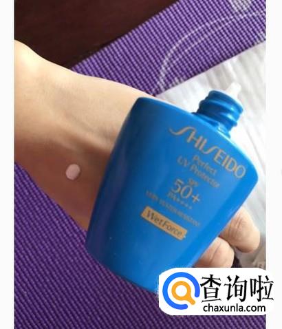 资生堂蓝胖子防晒霜:这款蓝色的是针对户外的防晒,它的科技比金瓶更强,就是它遇汗遇水之后防晒效果会更强,它的液体很轻薄不会有膜感,也不会泛白,所以夏天用这款脸上不会有膜感,很清爽,跟没有擦防晒霜一样,很透气。