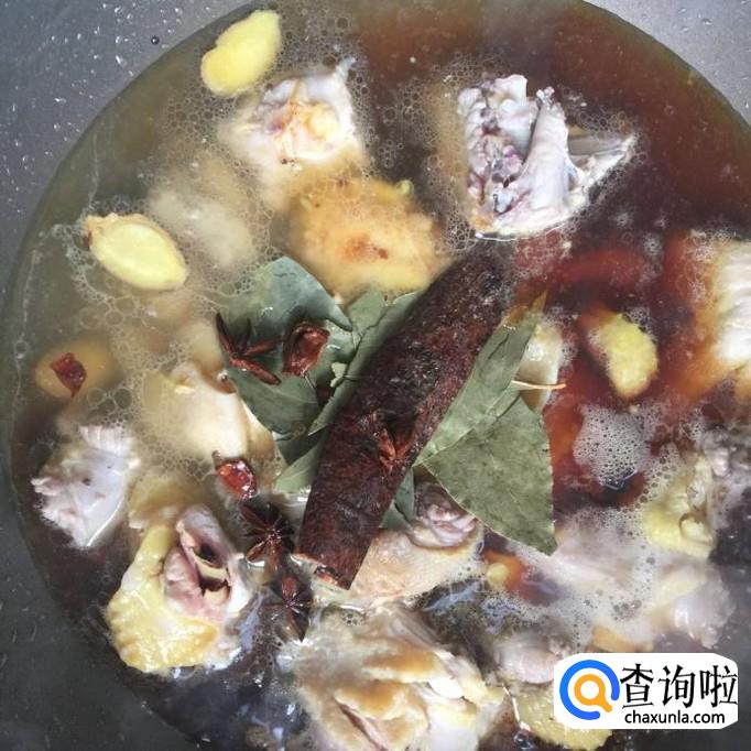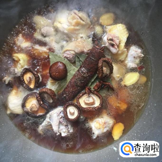 鸡肉、桂皮、八角、香叶、灯笼椒、盐巴、味精、食用油、蒜头、生抽、老酒