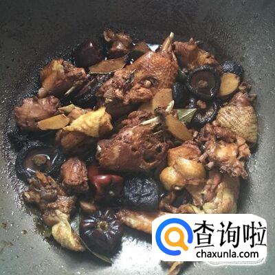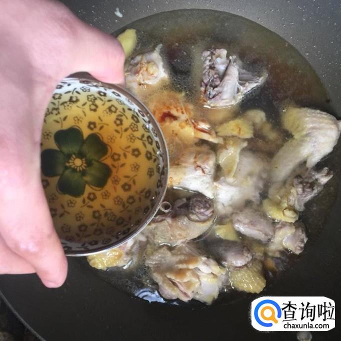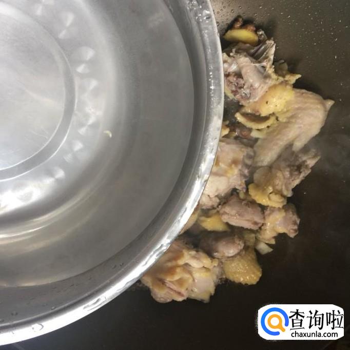 接着往锅中加入适量的水。水的话最好放到跟鸡肉差不多的量就可以了。