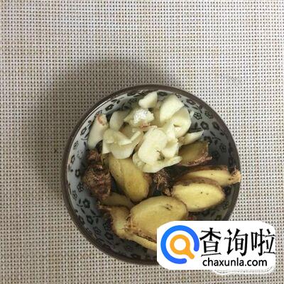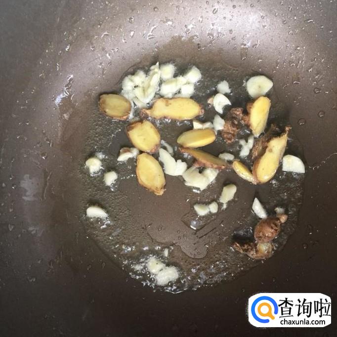 接着把生姜洗净切成片,蒜头用刀切成蒜蓉;锅中放入适量的食用油,待油冒烟倒入姜片和蒜茸爆香。
