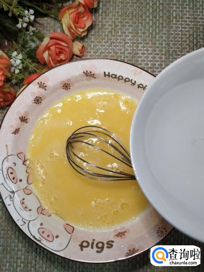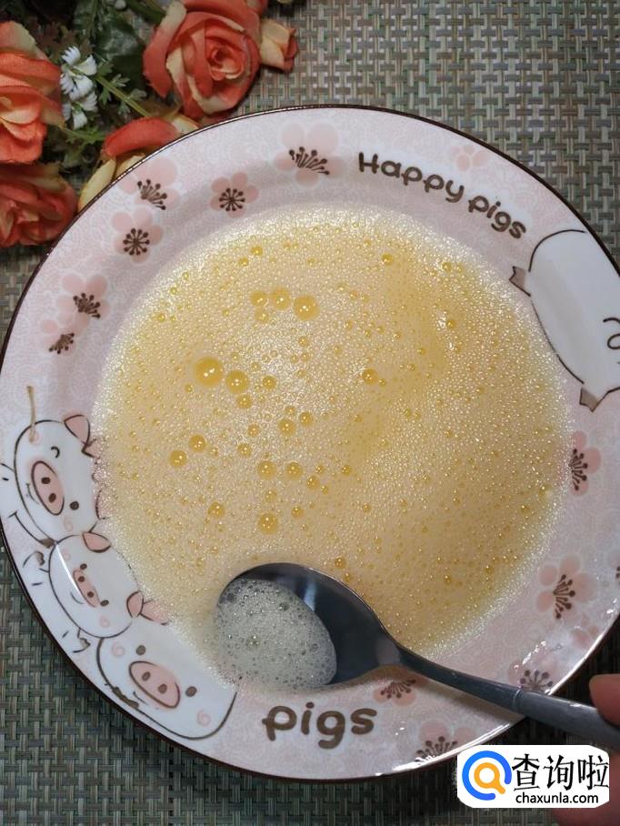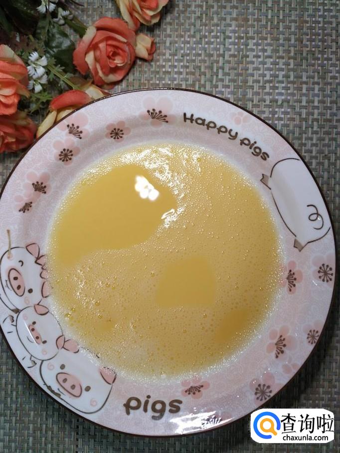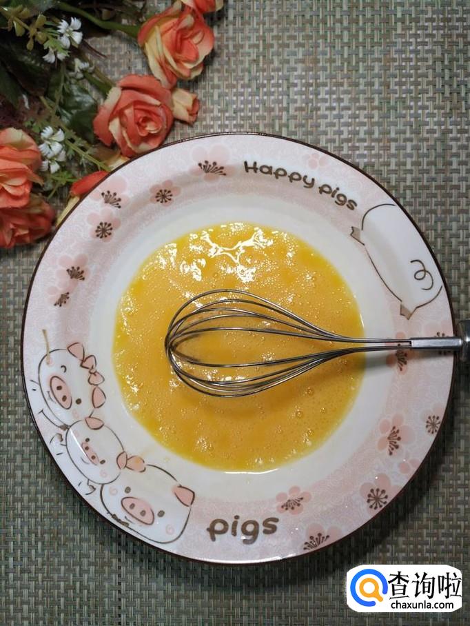 碗中打入一个鸡蛋,用打蛋器打散,尽量打得均匀一些,这样做出来的鸡蛋羹才更加滑嫩。