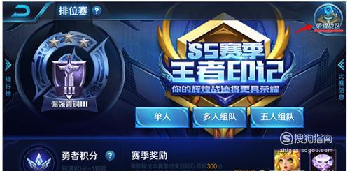 在排位赛右上角有个“荣耀战区”图标直接点击进入荣耀战区