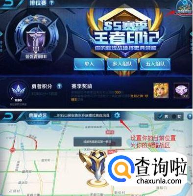 在荣耀战区的上面有个设置图标,直接点击这个设置图标来设置荣耀战区的位置