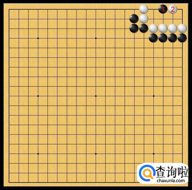 白棋直接在白2处靠住黑1,白2的位置在白棋右上角的左边,位置甚好。白棋牢牢的占据了一个有利的做眼的位置。如图所示。