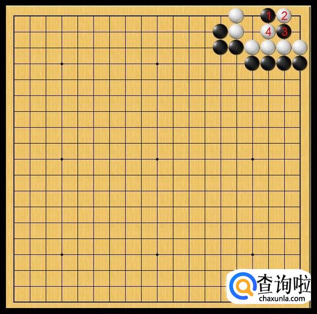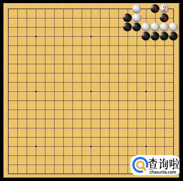 黑棋在黑3处靠住白2,黑3的靠对白2形成了打吃,如果让黑棋打吃了白2,那黑棋将在白棋内部占有右上角。如图所示。