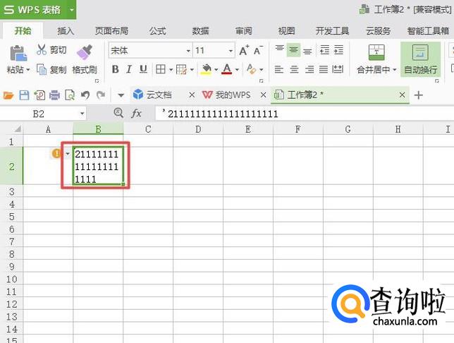 然后我们选中该单元格,之后我们点击工具栏中的自动换行;