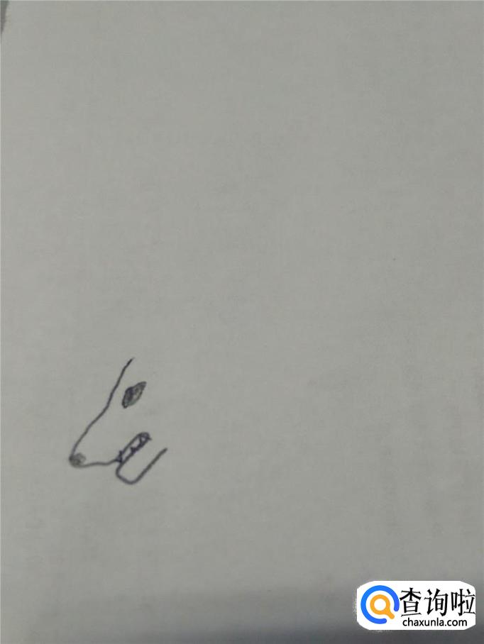 在头骨隆起的地方,画一只菱形的眼睛,在鼻子处点一个黑点,表示鼻尖。在两片嘴之间画几个小的三角形,表示牙齿。