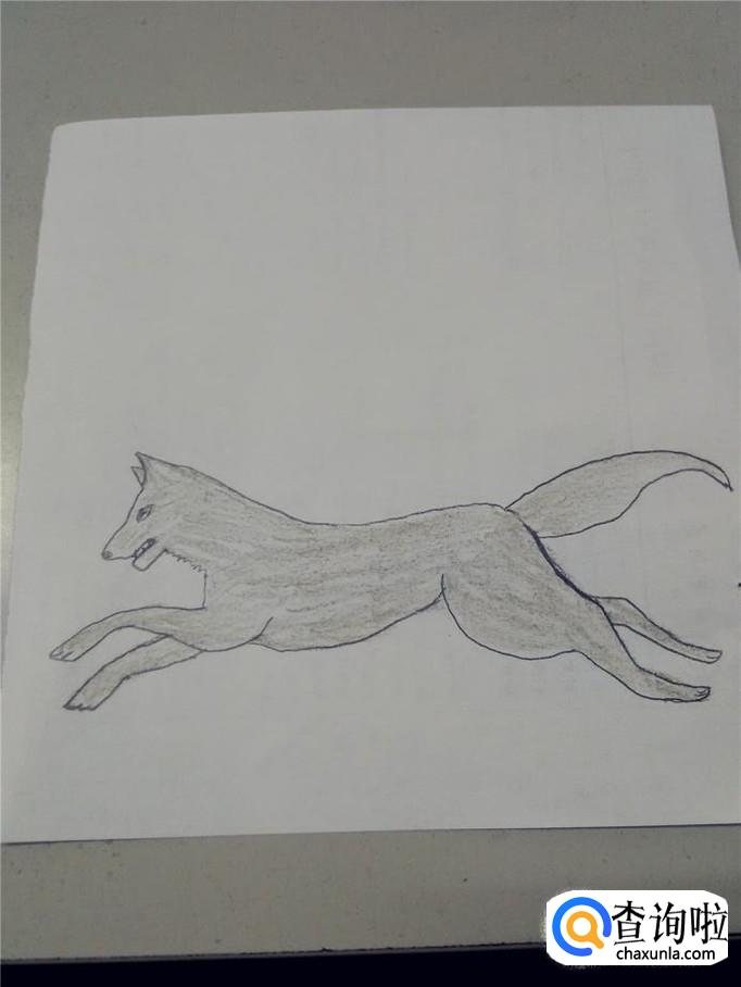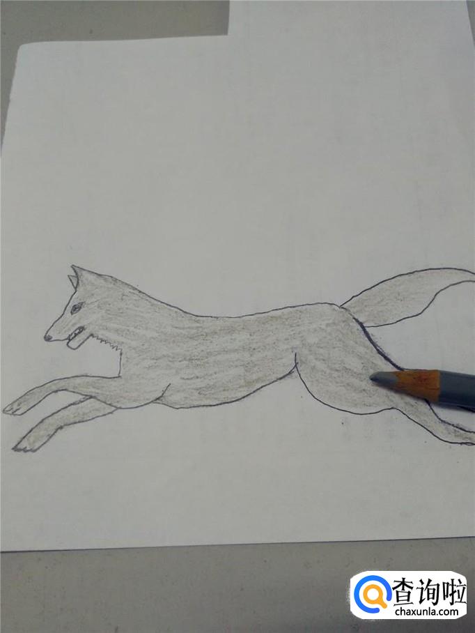 最后用灰色把狼涂上颜色,可以粗粗地涂色,表示狼粗糙的毛,到这里,奔跑中的狼就画完了。