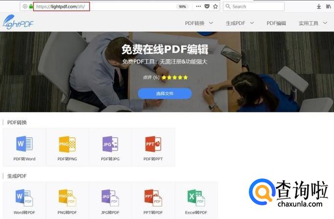 电脑浏览器打开LightPDF主页