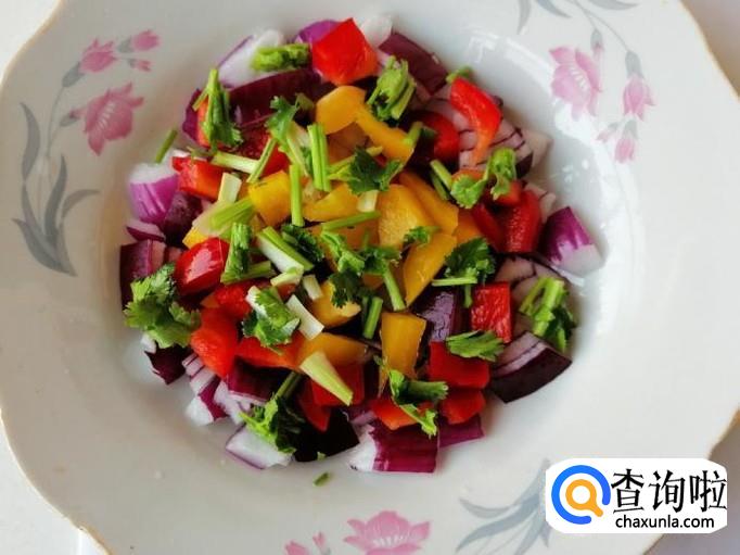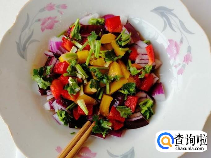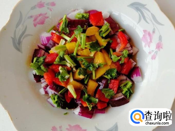 紫圆葱香菜拌彩椒的做法