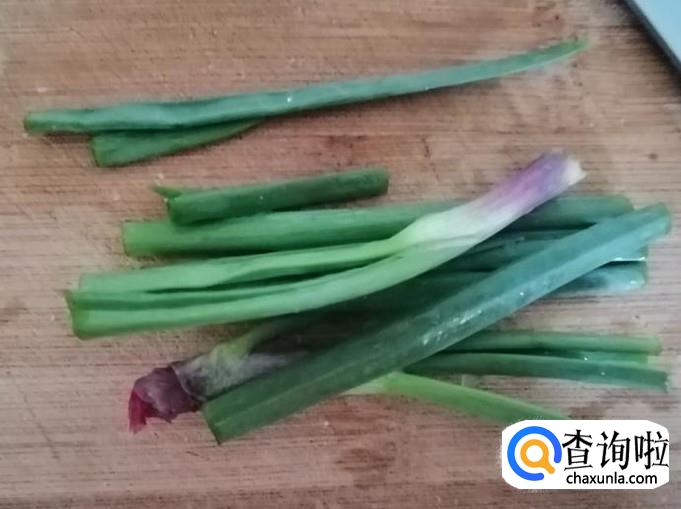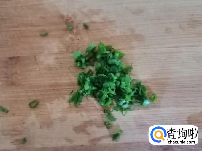 取适量青葱,用清水把青葱洗净,然后把青葱放在菜板上,用刀切成葱末,切好待用。