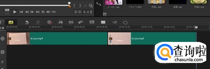 重复上面的操作。导入两个,两个以上的素材。如图,两个素材在同一个时间轨。两个视频就链接成功了。