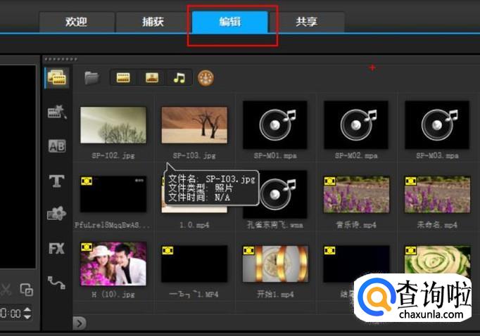 首先打开会声会影软件,会在最初的欢迎界面。点击界面最上面的编辑界面。