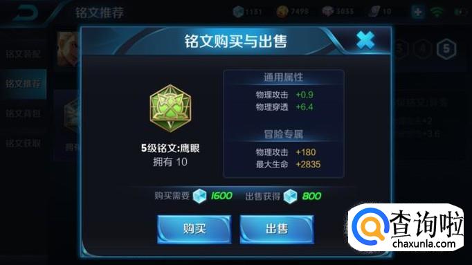 绿色铭文小编我会选择五级铭文:鹰眼*10