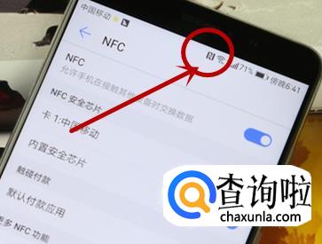 启用成功后,手机上方会出现NFC的图标,如图所示。