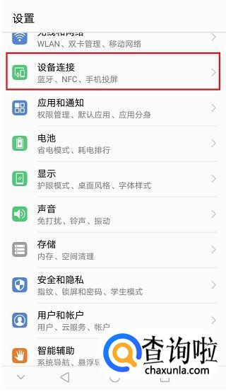 点击设置,进入界面之后,点击“设备连接”。