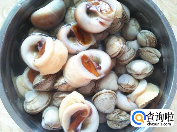 白蚬子要用水浸泡一段时间后,用手使劲的搓洗干净。大香螺里面会有很多泥沙的,所以一定要在水里冲洗几遍,然后用刷子刷洗干净,并且浸泡在水里。