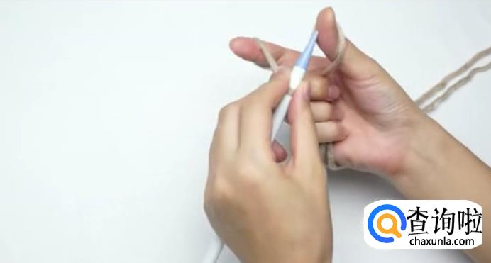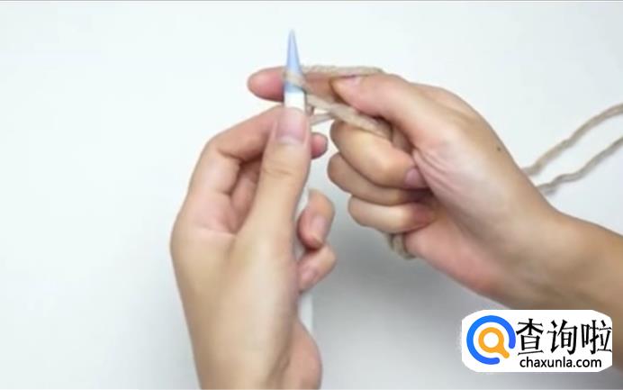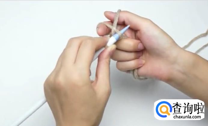 用毛线在棒针上绕一圈,这是第一针。左手固定住棒针上的线,然后勾住大拇指内侧的线,再勾住食指内侧的线