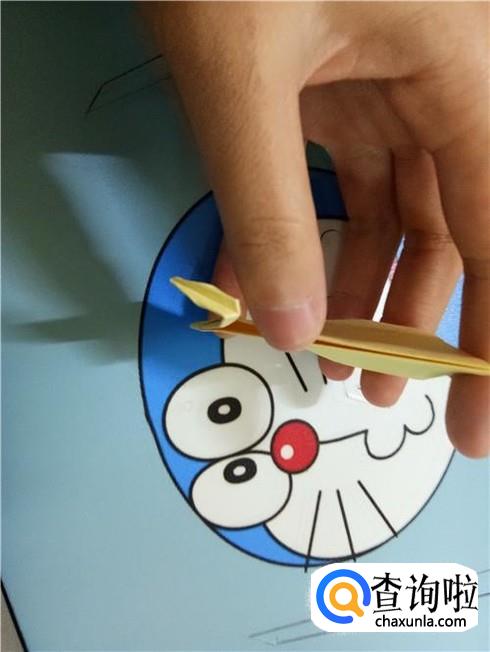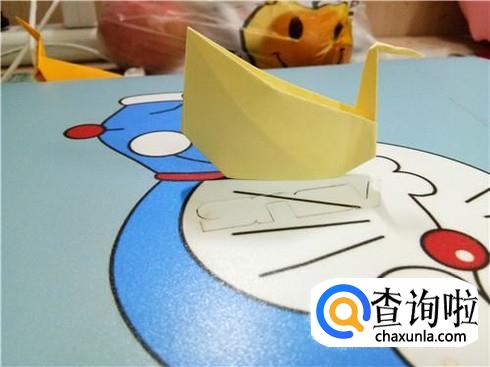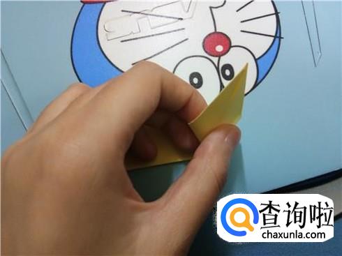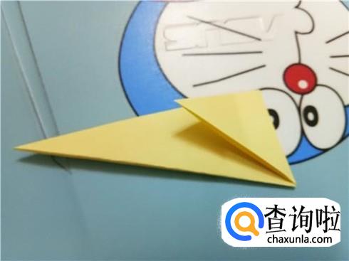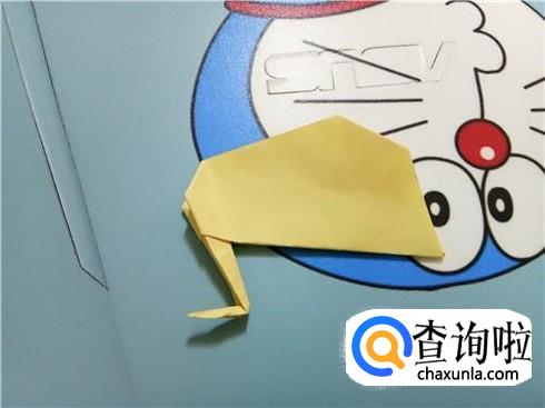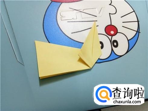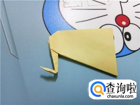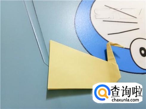 紧接着,我们将左右两边的角向中间折叠,并且将两部分合拢,再将尖角的这一部分折叠回来,进行整理就可以当做天鹅的头了。