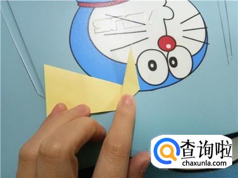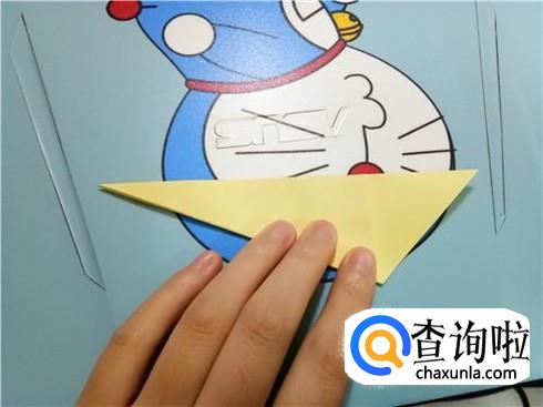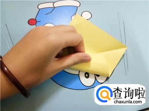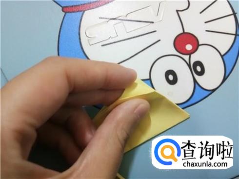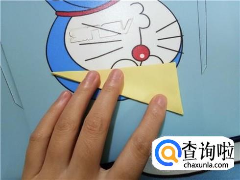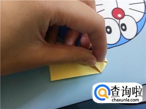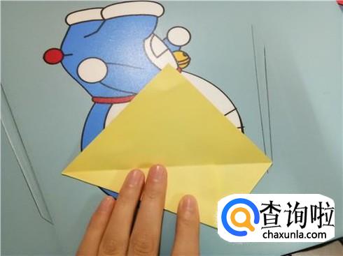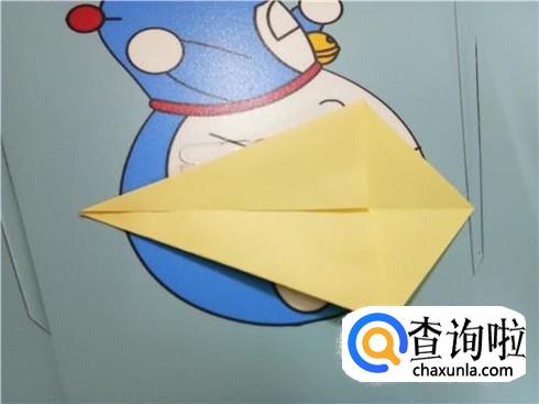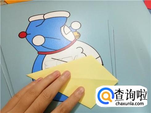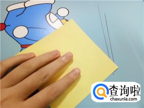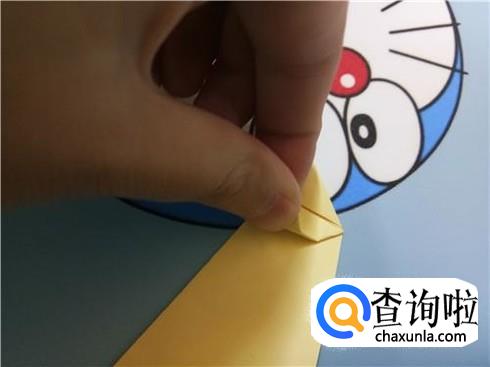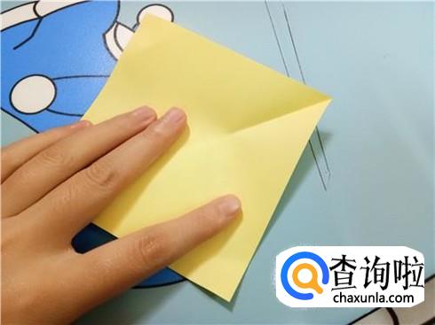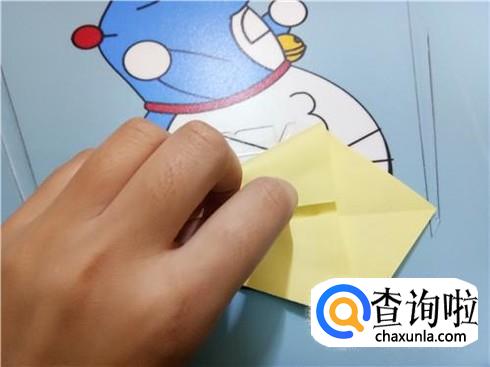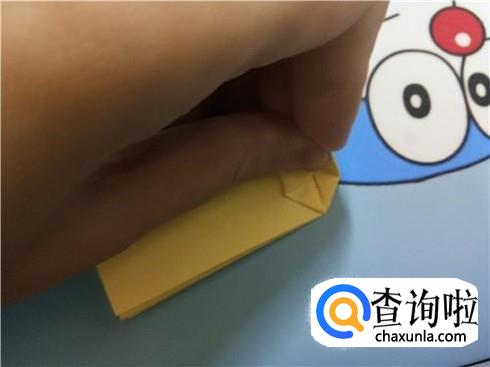 然后,将上边部分折叠回来来与下边部分重合,再将右边有角的部分向左折叠,并且将下边的这一层纸抬起覆盖住刚才从右边折过来折叠的部分。